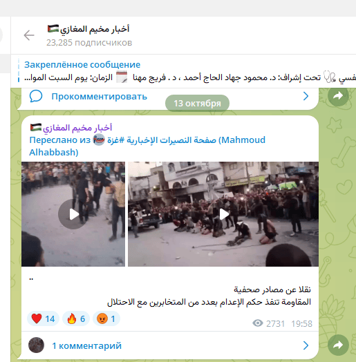 Опубликовано 13.10.25 в ТГ-канале Нусейрат1