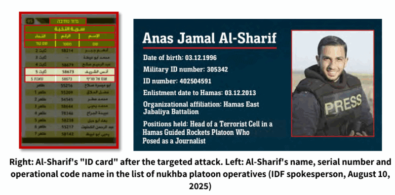 Anas Jamal Mahmoud al-Sharif (стр. 42, п.21). Был боевиком ХАМАС и журналистом «Аль-Джазиры»