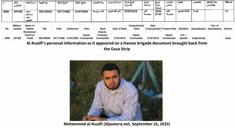 Mohammed Isma’il al-Kuaifi (Abu al-Mu’tasim) (стр. 48, п. 29). Был командиром ХАМАС, работал на Аль-Джазиру и множество менее известных СМИ