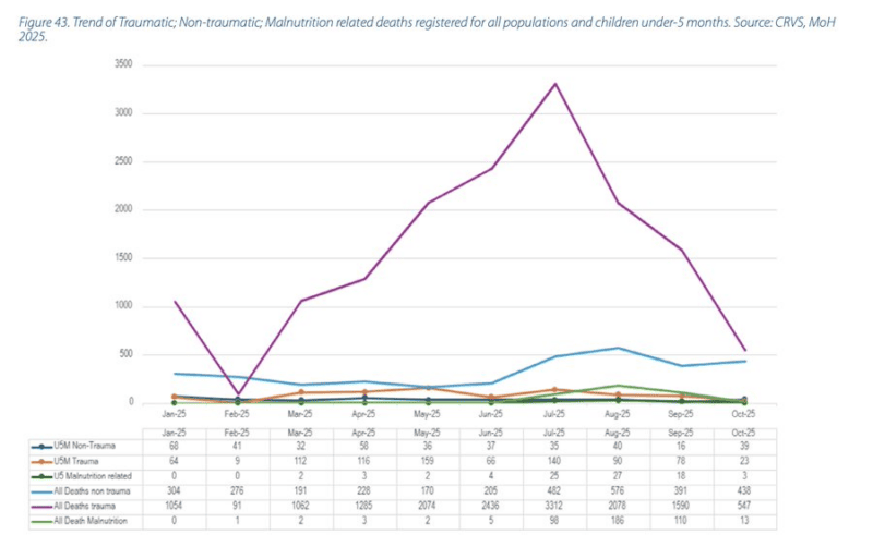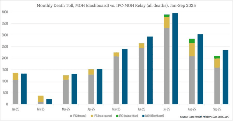 В феврале 2026 года американский исследователь Габриэль Эпштейн в своем твиттере сообщил, что Минздравом Газы все-таки была опубликована статистика общей смертности в Газе по различным причинам за 10 месяцев 2025 года (с января по октябрь).